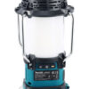 Latern/raadio töötab BL1860B akuga 360˚ valgus + raadio kuni 14 tundi ja ainult raadiorežiimis kuni 53 tundi.