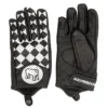 · Back of glove with checked print.