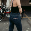 - Back pockets with embroidery design detail