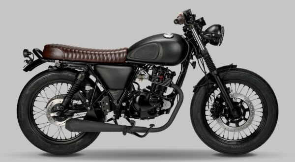The Mongrel has 18-inch all-black satin-finished wheels and wide 4.10×18 old-school tires. The extra-wide front end and rims give it a slightly more aggressive look. The low, wide handlebars with brown grips and the brown saddle with narrow stitching guarantee that getting from point A to point B will be comfortable and stylish.